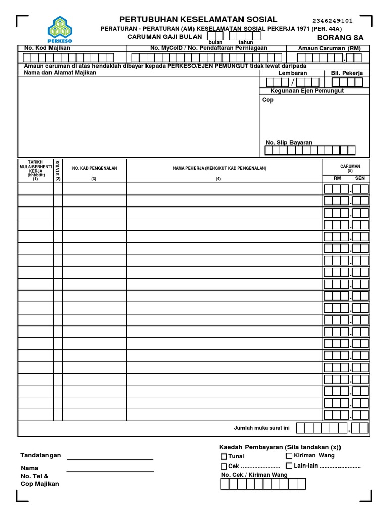 Borang 8a perkeso excel format no download needed perkeso borang 8a socso borang 8a. Up to 24 cash. Employers who submit payments through the following banks must.